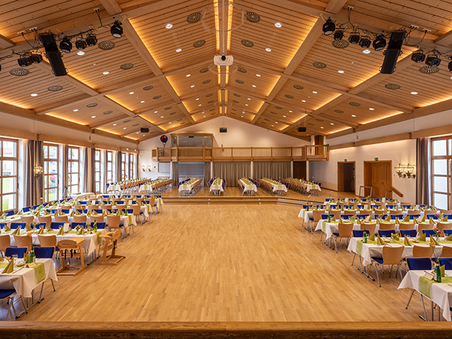 Feste feiern wie sie fallen, das konnten bereits schon unsere Vorfahren und wir haben es nicht verlernt. Auch Sie sind herzlich eingeladen, an unserer guten Laune teilzuhaben. Erleben Sie unsre Art zu feiern. Mittelpunkt dieser Festivitäten ist unsere im Jahr 1986 erbaute Festhalle in Dietmannsried. Sie bietet das ideale Dach für Veranstaltungen aller Art. Besonders geeignet ist der Saal für größere Veranstaltungen bis 500 Personen wie z. B. Tagungen, Kongresse, Betriebsfeste, Hochzeitsfeiern, Musikkonzerte usw.