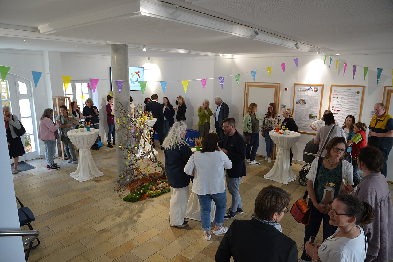 In der Eröffnung begrüßte Erster Bürgermeister Werner Endres die Gäste zu einem kleinen Festakt im Foyer des Rathauses. Von Seiten des Landratsamtes nahmen Claudia Ritter als Abteilungsleiterin der Abteilung Mensch und Gesellschaft, Christof Büsing als Jugendamtsleiter sowie Marion Hilgart von der Koordinierungsstelle Familienbildung teil. Ebenso waren weitere Mitarbeiterinnen und Mitarbeiter mit anwesend.