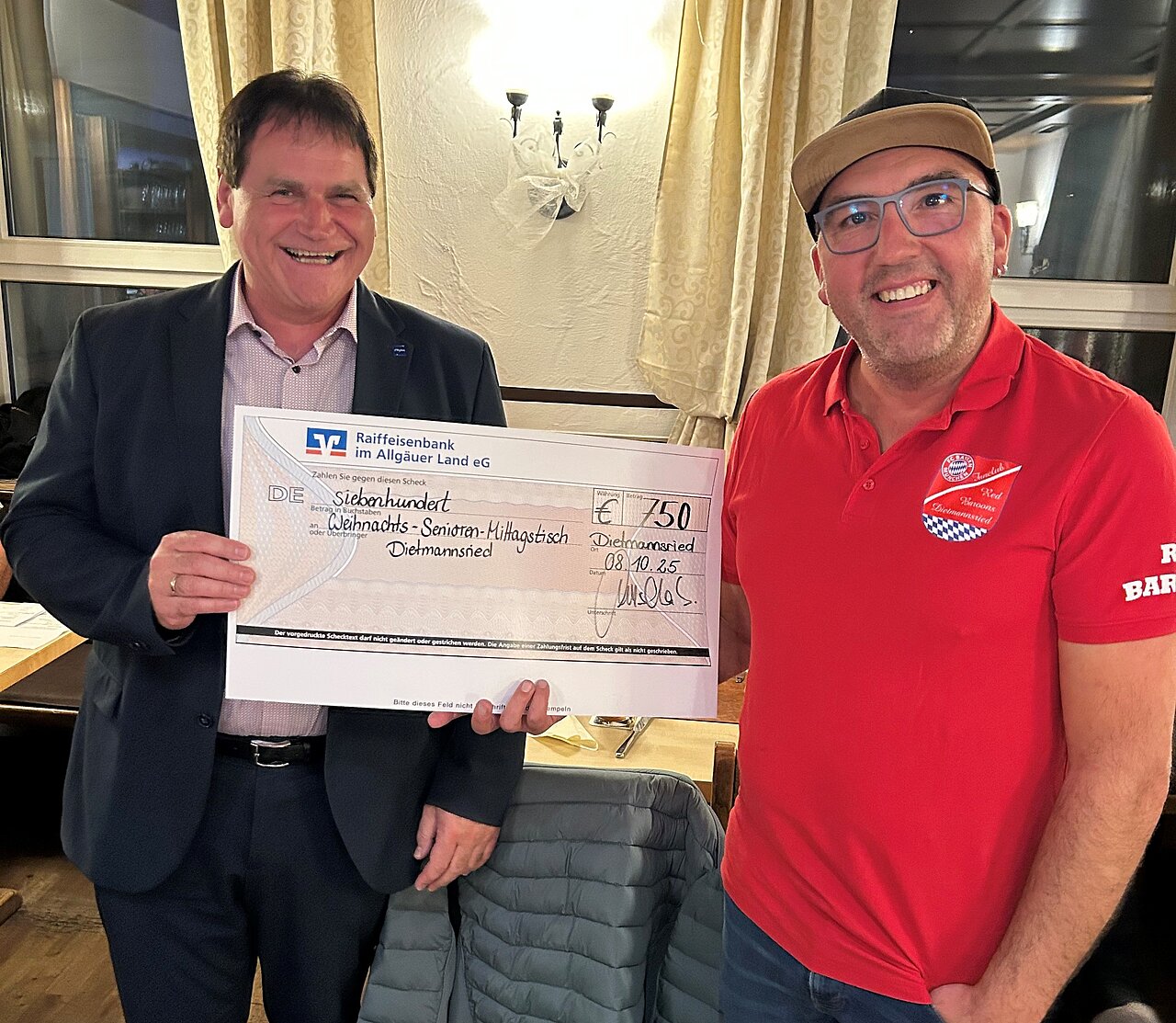 Bereits in der Vergangenheit hat der FC Bayern Fanclub die Bürgerstiftung mit Spenden un-terstützt. Anlässlich der vor kurzem stattgefundenen Jahreshauptversammlung konnte Erster Bürgermeister Werner Endres mit großer Freude wiederum eine Spende in Empfang neh-men. Der Vorsitzende des Fanclubs Sven Gutschka überreichte im Namen des Vereins eine Spende in Höhe von 750,-- Euro für den kommenden Seniorenmittagstisch an Weihnachten (21. Dezember 2025). Erster Bürgermeister Werner Endres bedankte sich beim Vorsitzenden sowie beim gesamten Präsidium für die großzügige Unterstützung, die den Senioren direkt beim Mittagstisch zugutekommt. Die Verantwortlichen der Bürgerstiftung Dietmannsried im Allgäu sowie die Bürgerinnen und Bürger bedanken sich recht herzlich beim FC Bayern Fan-club für die großzügige Spende.