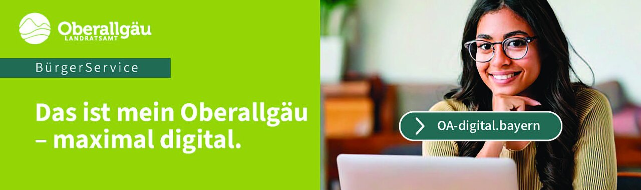 Unter dem Motto „Das ist mein Oberallgäu – maximal digital“ finden Sie alle Informationen zu den neuen Servicezeiten sowie zu den digitalen Angeboten übersichtlich unter oa-digital.bayern