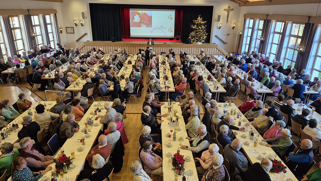 Kurz vor dem Jahresende wurde nach dem Mittagessen nochmals das Jahr in unserer Gemeinde betrachtet. In Aufnahmen von Ereignissen und Begebenheiten blickte Erster Bürgermeister Werner Endres nochmals in das Jahr zurück. Zuvor hatten bereits der/die Musiker/in Roman Musch und Magdalena Musch die Bürgerinnen und Bürger in eine schöne musikalische Weihnachtsstimmung versetzt. Nach der Jahresrückblende trugen Gedichte und Vorträge dazu bei, dass die Teilnehmerinnen und Teilnehmer einen großartigen Nachmittag im Kreise vieler Freunde und Bekannte verbringen konnten. Der Vorsitzende des Stiftungsrates führte nicht nur durch das Nachmittagsprogramm, sondern verabschiedete auch die Besucherinnen und Besucher mit einem weiteren Gedicht. Ebenso bedankte er sich bei allen Beteiligten und Engagierten im Jahr 2025. Am Seniorenmittagstisch nahmen auch der Zweite Bürgermeister Otto Schmid sowie die Dritte Bürgermeisterin Evi Breher teil.